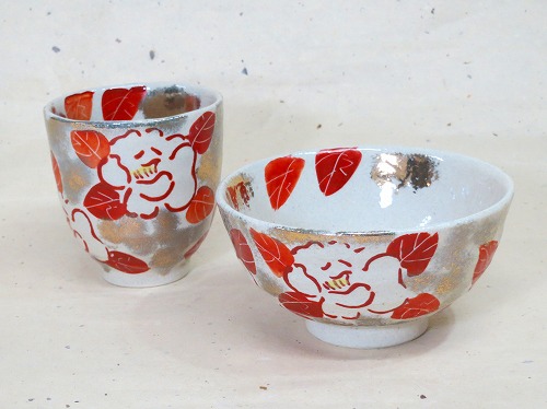 金彩赤牡丹(手描き) 飯碗/湯呑